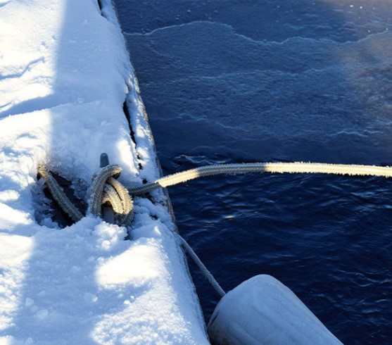 As for spring, the marina is 6 miles up the St. Louis River from Lake Superior. It was originally a shipyard that built Victory and Liberty ships during the two world wars. The marina has solid earthen piers and slips averaging 16 feet deep. This is an excellent well of warm deep water and a safe haven from the marauding logs and mini icebergs that flow downriver in a frightening display during May. Staying in the travel-lift bay further enhanced our security. Both sides of the bay are strong steel structures capable of supporting the 40-ton crane. Another advantage of this location is that we were right in front of the laundry and bath facilities, although our hair still froze as we walked to the boat after showering.