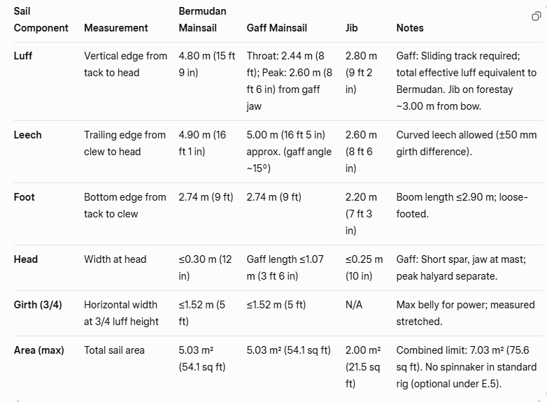 The Bermuda mainsail is now a legal alternative to the traditional Gunter rig (see the class rules below).