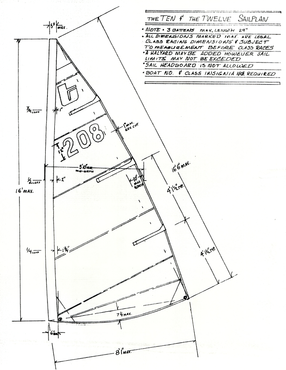 The Twelve (also known as The Twelve) is a 12-foot fiberglass sailing dinghy designed and built by J. Melton of J. Melton Sailboats, Inc. in Andover, Ohio, in the early to mid-1980s. It was produced as a direct clone of the popular Laser one-design dinghy, sharing the same hull form, sail, mast, boom, daggerboard, and rudder as Melton's related The Ten model (a slightly smaller soft-chine daysailer). Construction history is limited, with very low production numbers—likely only a few dozen hulls total—before the small company ceased operations around 1990.